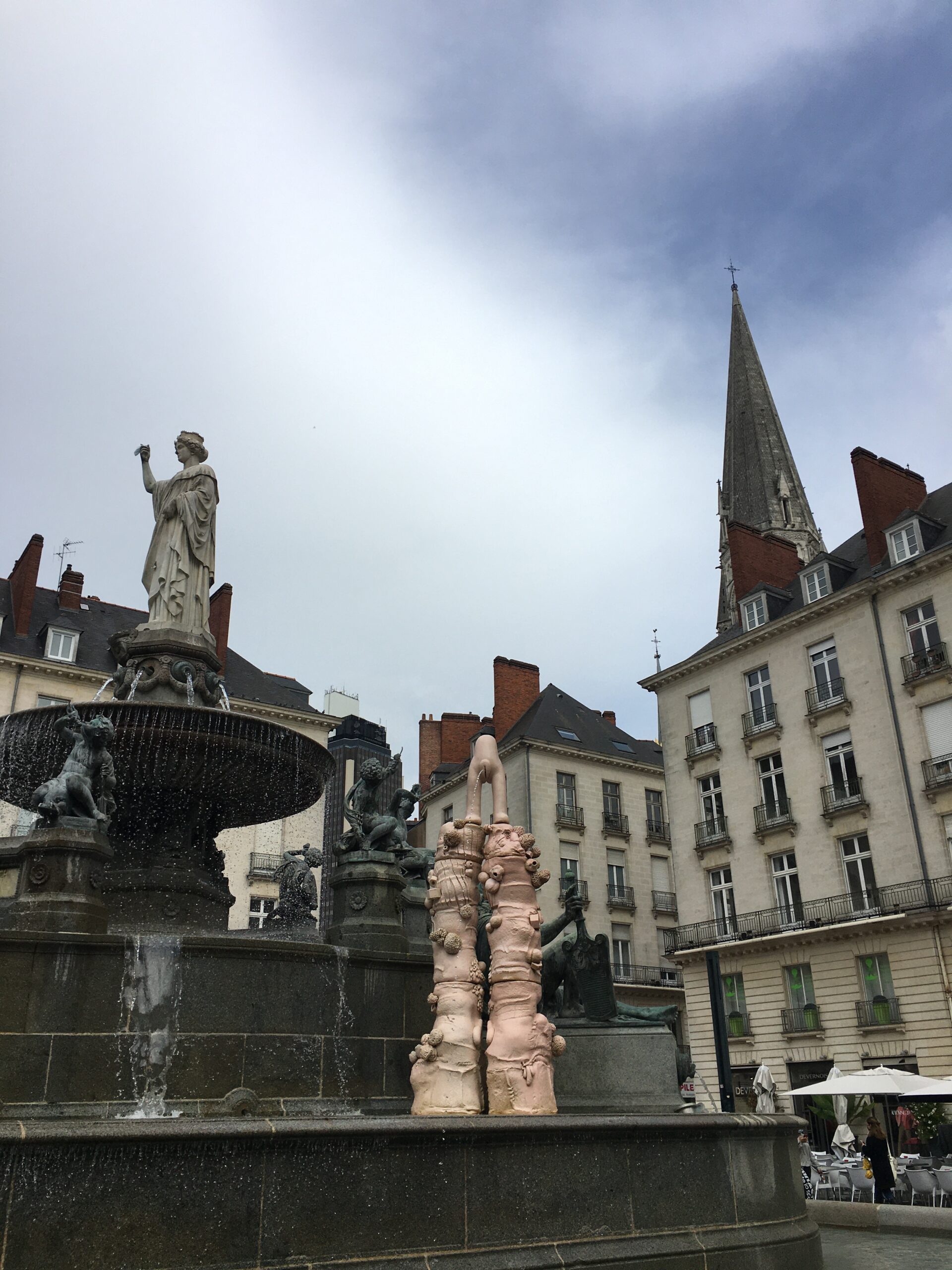Une autre des raisons pour lesquelles j’apprécie particulièrement cette ville : sa richesse culturelle et son coté unique. Tous les étés , se déroule le Voyage à Nantes. Il invite chaque année des artistes à venir exposer « hors les murs ». Oeuvres spécialement imaginées pour différents lieux dans toute la ville, les artistes interviennent temporairement pour casser les codes et interpeler le visiteur, on donne un nouvel aspect à ces places, à ces lieux parcourus et fréquentés. Chaque année certaines oeuvres sont conservées pour continuer à étoffer l’identité de cette belle ville. On pourra continuer de les observer tout au long de l’année. Les plus impression(nantes) -!- d’après moi sont souvent place Royale, cette grande place circulaire laisse libre court à beaucoup d’espace pour inventer. Mais il n’empêche que certaines sont tout aussi percutantes malgré leur plus petite échelle.