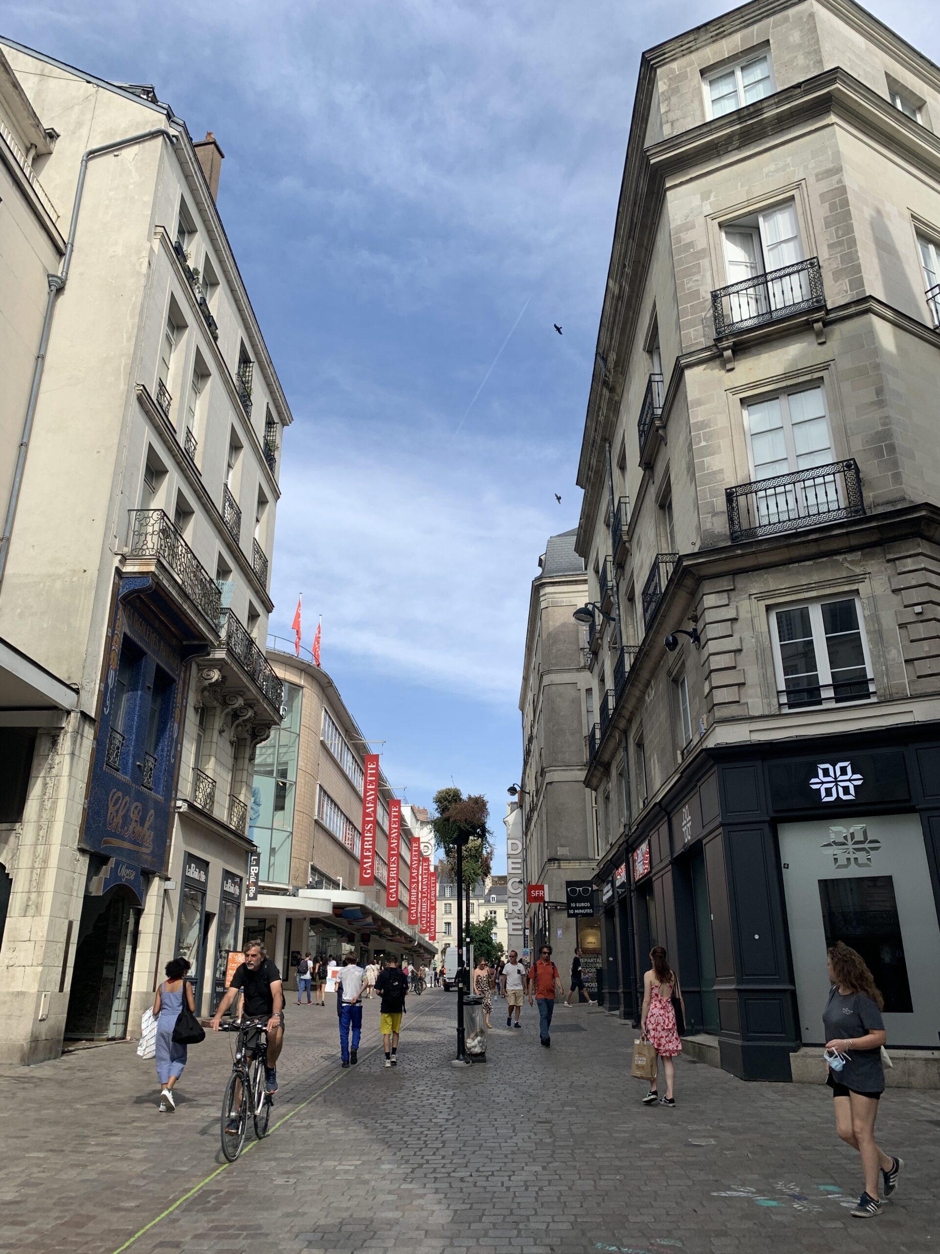Mettons que l’on commence le chemin par la Place Graslin. (Ce quartier est l’un des plus « chic » du centre, il est à lui même est une visite complète, avec les rues qui l’entourent, divers restaurants et boutiques, l’Opéra, le splendide passage Pommeraye – tout cela déja peut vous occuper suffisamment longtemps si vous le souhaitez). Redescendez jusqu’à la place Royale par la rue Crébillon – magasins en tout genre & passage Pommeraye rempli de boutiques – puis continuez par rue d’Orléans, ou la petite rue cachée derrière en passant par la basilique saint Nicolas, pour ensuite traverser le cour des cinquante otages (C’est là ou se croisent les tramways et plusieurs bus.. ce cours peut d’ailleurs se longer pour arriver au monument charles de Gaulle et au début du cour de l’Erdre – et se retrouver non loin de la halle Talensac où se trouve un marché fermé tous les matins)